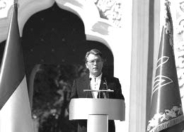 Віктор Ющенко, Президент України: "Ми наведемо порядок в Україні. Тільки я звертаюсь до вас шановні колеги, щоб не опускались у вас руки, щоб не виникав песімізм, коли на поверхні з'являються речі, які багато-багато років стримували національний прогрес. Нам треба реагувати на ці виклики..."